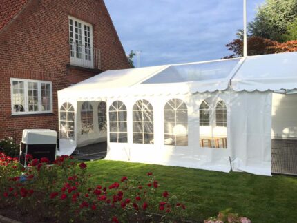 6*9 m telt uden gulv *I stiller 3 mand til opstilling og 3 mand til nedtagning og klarer montage og de-montage med os. 12 bænke 6 firkantede borde 2 lyskæder 1 Musikanlæg Alt hvad der skal bruges til en hyggelig sommer aften!!