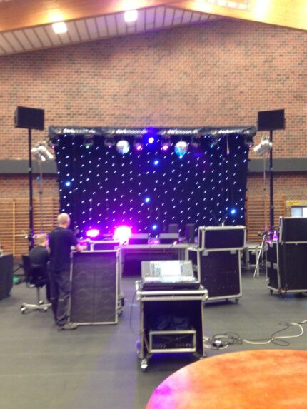 Lej et sort bagtæppe på 6*3 m. Kommer komplet med stativ m.v. OBS: På billedet er det en LED version. Koster kr. +800,-.