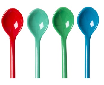 Farvede engangs iskeer der leveres i poser med 50 stk blandede farvede skeer.