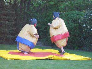 Sumodragter. 2. stk. + 2. hjelme + måtte.
