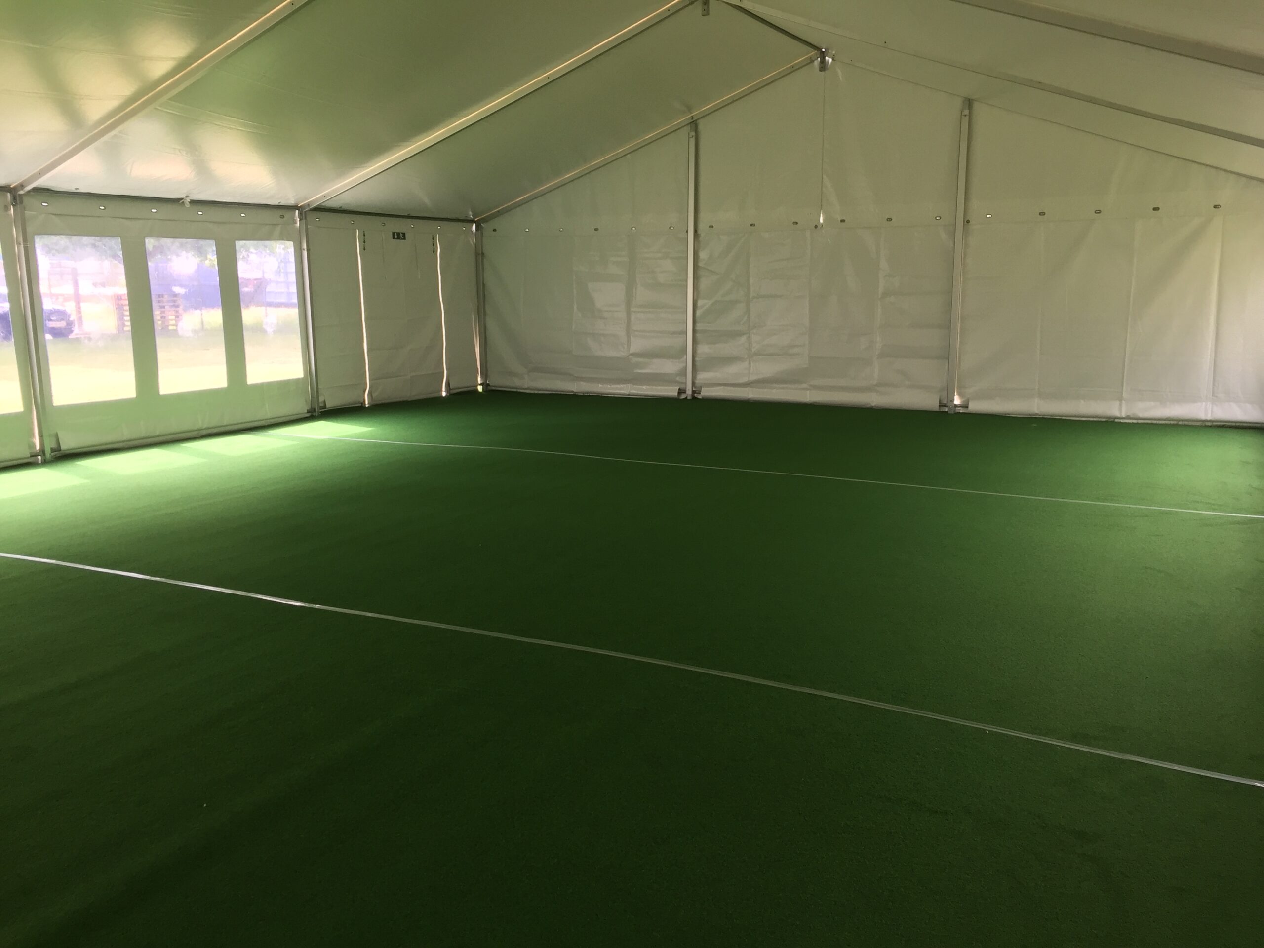 Vi tilbyder at udlægge gulvtæppe i mange flotte farver oven på teltgulvet når du lejer telt hos os.