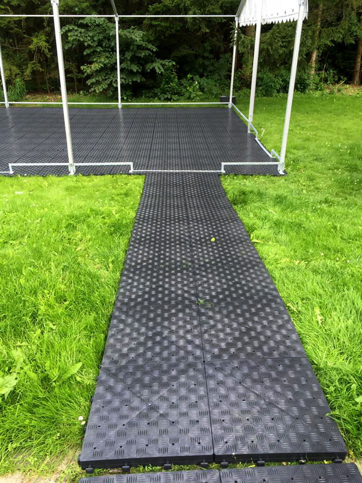 Lej telt gulv hos os! Pænt nyt gråt plastik gulv udlejes til f.eks. telte m.v.