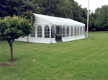 54m2 - 36-54 gæster hvidt party telt udlejes til fester m.v. Dette er mest populære størrelse.